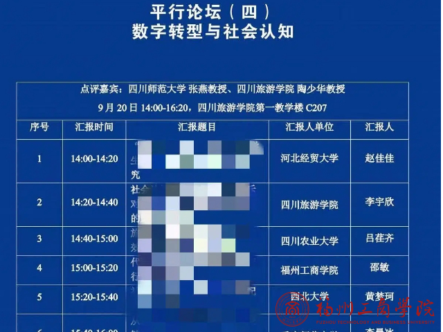本次研讨会平行论坛共设有四个议题,经过专家审评小组仔细审查和评估,旅游管理专业教师邵敏撰写的工作论文入选并受邀在平行论坛(四)“数字转型与社会认知”上进行汇报。