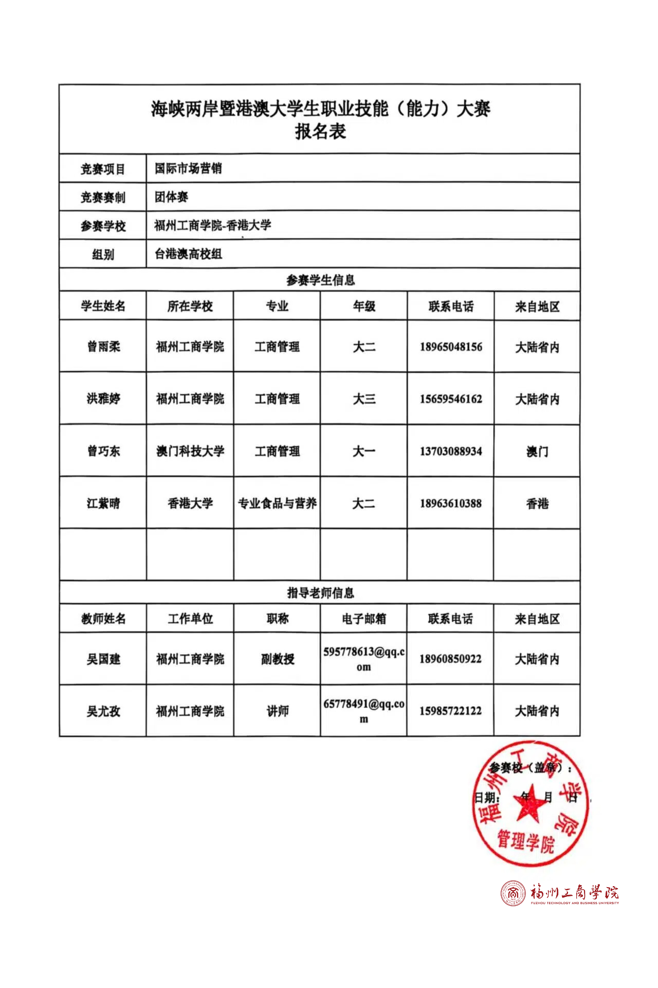 在第十二届海峡两岸暨港澳大学生职业技能大赛“国际市场营销”赛项中,yl6776永利集团与香港大学、澳门科技大学学子共同组建团队,由工商管理专业曾雨柔、洪雅婷(大陆)与曾巧东(澳门)、江紫晴(香港)组成跨地域小组,在指导教师吴国建、吴尤孜的带领下,围绕市场分析、品牌策划等实战模块开展备赛。团队通过协作完成方案打磨,最终以“人机协同,AI赋能跨境营销”的创新思路斩获佳绩,展现了两岸青年在实战中的默契配合与专业能力。 竞赛过程中,两岸学子不仅共享专业知识,更在文化差异的碰撞中探索合作新路径,实现了“竞技+交流”的双重价值。