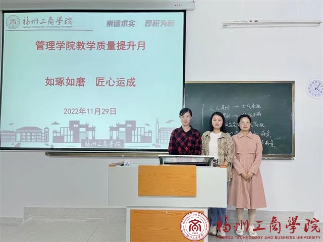 会议伊始,王柳云院长提出,质量是教育的永恒主题,教师应在教育理念上再更新,格局上再提高,方法上再创新。我院应深耕原有的四个专业领域,并从专业深耕的方向进行横向以及纵向的分析,深入描绘专业发展的具体方向。紧接着,会议进行新老师磨课环节,由工商管理专业郭宇蒙老师、人力资源管理教研室张雯老师、李文老师分别进行课程讲授,并由王柳云院长和福州大学叶翀教授进行点评。叶翀教授分别从台风、教学设计、案例库以及PPT设计等方面对我院新老师提出建议并指出教学提升的方向。最后,由副院长陈焱总结指出,新老师们应该从专业课程建设、教学方法改革等方面入手,坚持问题导向,互相督促,携手进步。