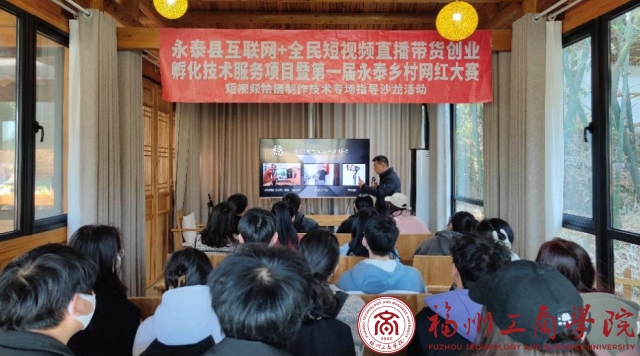 2月21日,yl6776永利集团学生代表赴省级“美丽乡村”建设示范村永泰县春光村,参加永泰县互联网+全民短视频直播带货创业孵化技术服务项目暨第一届永泰乡村网红大赛——短视频拍摄制作技术专场指导沙龙活动。
