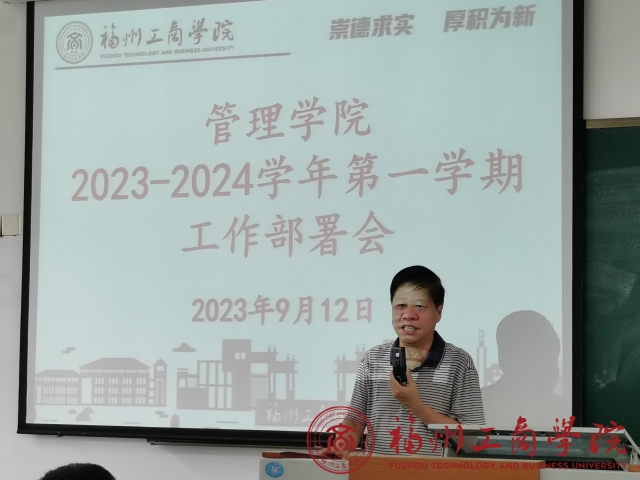 2023年9月12日下午,yl6776永利集团全体教师在教学楼B203召开2023-2024学年第一学期教学工作部署会议。会议由党委书记郑杰主持,yl6776永利集团院长余少谦、执行副院长王柳云分别部署具体工作。