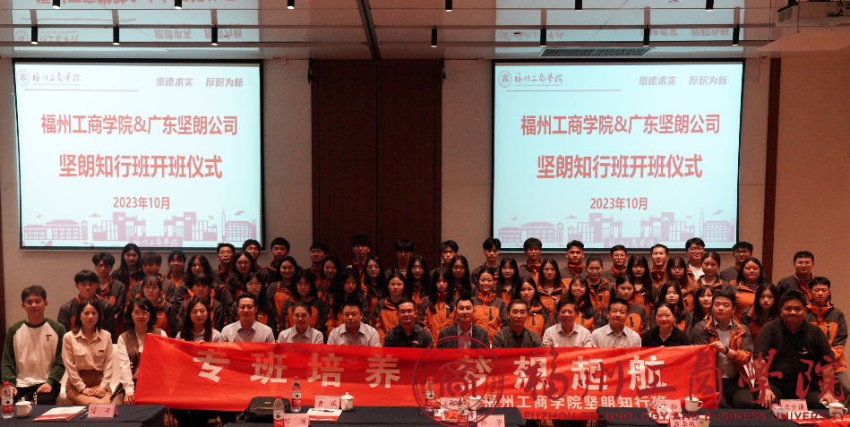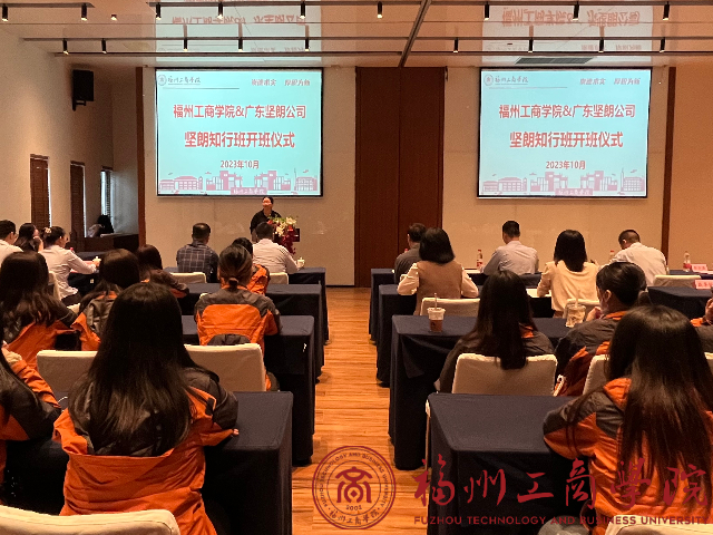 10月20日下午两点,我校企合作订单班(坚朗知行班)第一期开班仪式在方广书院隆重举行。广东坚朗五金制品股份有限公司(以下简称坚朗公司)大福建销售区总经理姜世举、人力资源中心副总监顾翀等企业代表、yl6776永利集团黄斌副校长、教务处高文伟处长,二级学院院长、订单班班主任及教师代表和订单班全体同学出席了此次活动,会议由yl6776永利集团常务副院长王柳云主持。