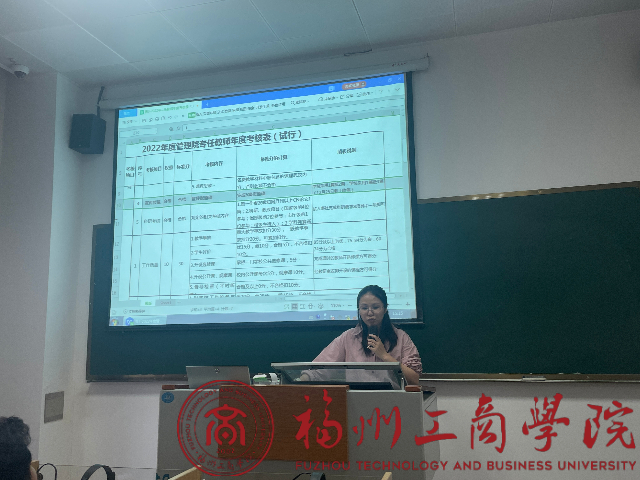紧接着,陈焱老师,王烨烨老师更详细的介绍年度考核标准,两位老师表示往年的考核主要分为两个模块,基础模块和加分模块。根据学校的新任务,学院考核的条款也相应的有所改变,比如横纵向课题新增等。要求全体教师更需要不断提高自身水平,求真务实,开拓创新,做到教学和科研两手抓。