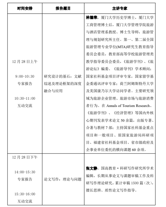 (一)指导参会人员把握旅游管理领域发展的最新趋势和转向,培养问题意识,提升在选题、文献综述等方面的精准度和专业性。